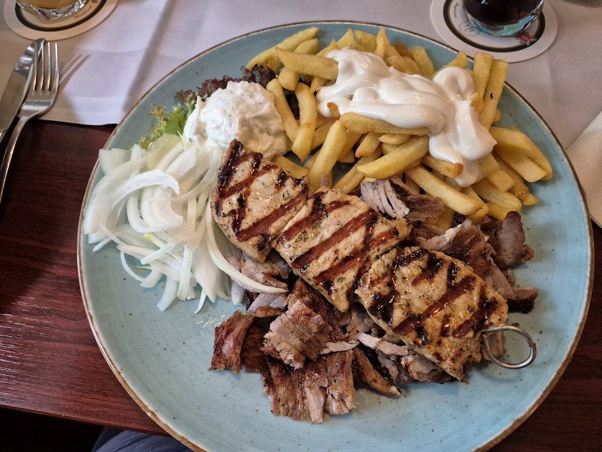 The moment you enter the restaurant, you're greeted with a welcoming ambiance that is both cozy and elegant. The decor, adorned with Mediterranean-themed touches, creates an inviting space perfect for casual dining or special occasions. The soft lighting and comfortable seating arrangements set the stage for a relaxed and enjoyable dining experience. Whether you're here for a romantic dinner, a family gathering, or a casual night out with friends, the atmosphere at Restaurant Mykonos / Recklinghausen is just right for any occasion.